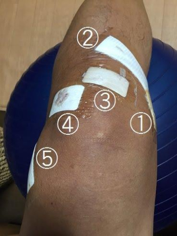 ⑤が腱をヒザの骨に通す時に引っ張る側の傷[d232][d232][d232]