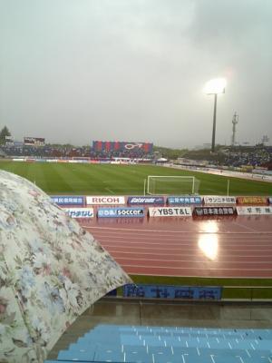 んで、開始前にゴル裏でたそがれてたら、なぜか山梨新聞の方に取材されました(笑)