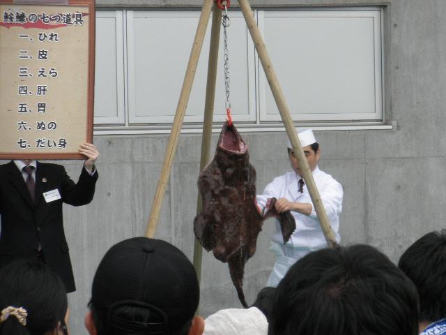 あんこうのつるし切り実演とあんこう鍋の配布。