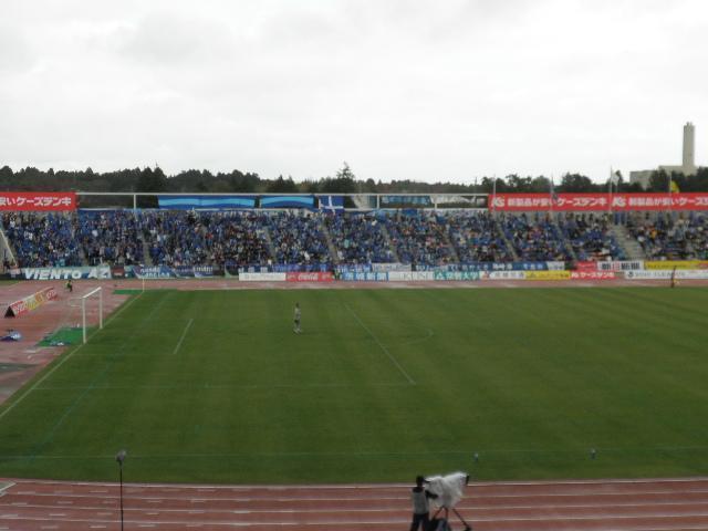 青く染まったバックスタンド。