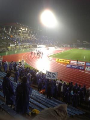 素早いカウンターから、右サイドに流れた吉原のアーリー気味のクロスに高崎のヘッド、難しい角度だったと思うけど逆サイドネットに決まる。雨の中遠くまで応援に来た甲斐があった(笑)