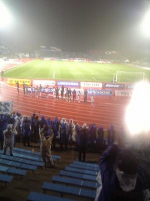試合開始前にアウェイゴル裏の上のほうの席で固まっていると、きれ〜なおねえさんに取材を受けて(どっかで見たことあったような?)いろいろ話をしましたが録画を見たら、荒田の怪我は残念ですがそのほかのメンバーの奮起に期待していること。と、雨ですがの質問に今年は開幕直後から雨にたたられた水戸ですが、負けてないから今日はもらったよ(笑)ってフレーズが番組中で使われてましたね。