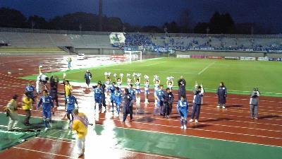 雨と風が強くて、寒いわでボールが落ち着かない凡戦でしたが、後半40分になろうかという時間帯にルーキー荒田のゴール(ほとんど相手DFのオウンゴール)で得点して逃げ切り、今季初勝利です。