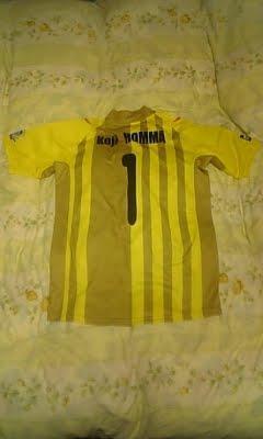 本間選手のJ2リーグ戦500試合出場達成を記念したユニが発売になったので、水戸のユニにしては珍しいゴールドカラーなので買った。