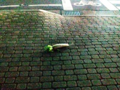 まあ、歩道に大根が一本落ちていたところで