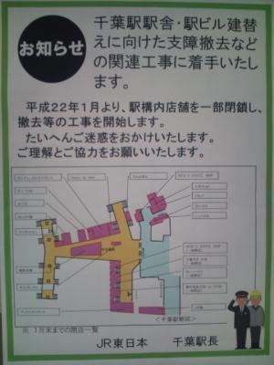 千葉駅では改良工事に伴い中央改札口近くのコンビニ以外すべての飲食店が一時閉店もしくは完全閉店になりますから