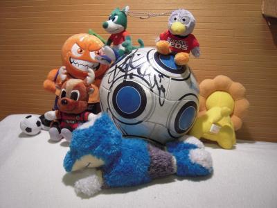 好評のガチャフロは一回200円。14選手と監督、キャラクター3パターンの合計18種類が用意されている。奥に見えるガチャフロαは一回500円。今回の目玉は7選手のサインが入った試合公式球だった。