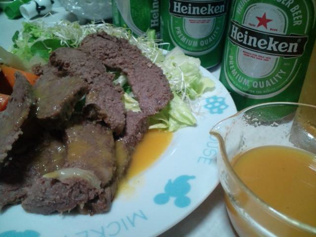 今日はオランダ戦だからハイネケンを用意してキックオフを待つそして今日のメインディシュはロースビーフをオレンジソースで頂きます