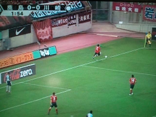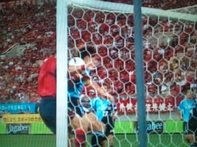 開始早々、ゴールラインを割り川崎のコーナーキックになるところでも目の前にいる副審は旗を挙げずにスルー(爆)