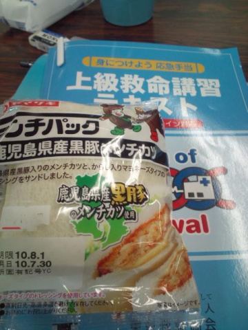 仕事絡みの救命講習ですこれから昼休みランチは鹿児島県産黒豚メンチカツ