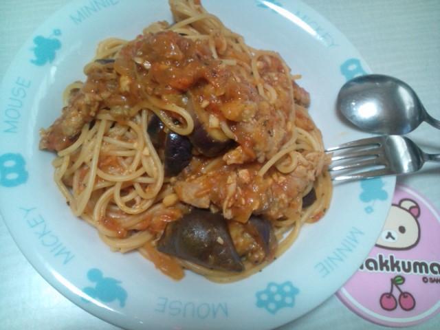 貰い物のトマトとナスに玉ねぎとか入れてパスタにしましたサッカーに関係ない?いやコレから出かける腹ごしらえした だけです今日も暑いからねちゃんと食べて出かけましょー