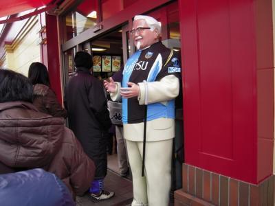 1敗を喫した武蔵小杉KFCの入り口に立つカーネルですが