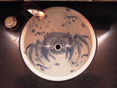 ※なんだか蟹の口に流されていきそうな洗面ボウルは予讃線特急の洗面台にありました