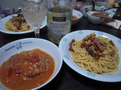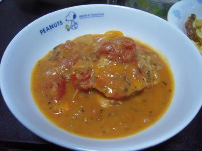 スポーツ新聞のテレビ欄には鶏肉のトマト煮