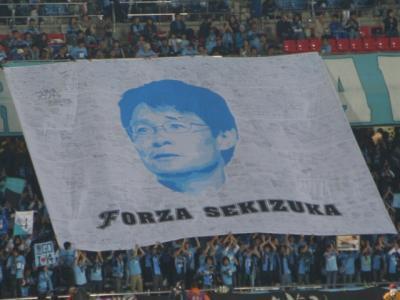 会社の 関塚監督の寄せ書き横断幕