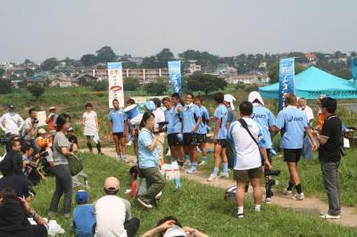 川島選手会副会長始め宏樹、井川、鄭、山岸、村上、谷口、ヴィトール等が大勢でお出迎え