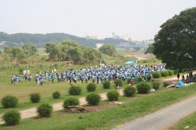 土手の上に上ると集合場所には既に300人を超える参加者の一団が