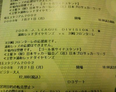 そして7/21埼玉スタジアムでの浦和対川崎戦のチケットも