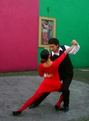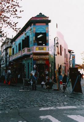 タンゴ発祥の地.ボカ地区.カラフルな家と路上ではタンゴも..