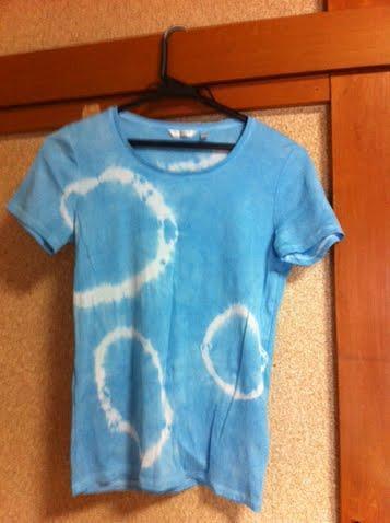 真っ白のTシャツを紐で縛って柄になる部分を作ります。
