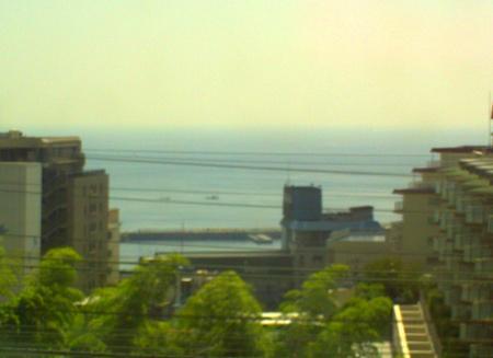 車窓。おそらく、熱海あたりですがレトロな色が出てます