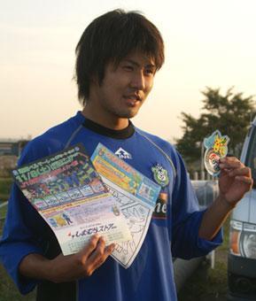 土曜日の水戸戦【しまむらストアースペシャルデー】のチラシを島村君に渡して撮影♪なんて