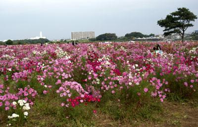 今のシーズンはコスモスが盛りで、地元のテレビ局がその様子を映してたから見に行ってみよう。と