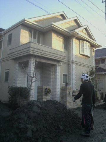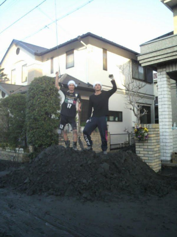 家の前で立ちつくす友人と友人の母親と、そして・・・泥の山。