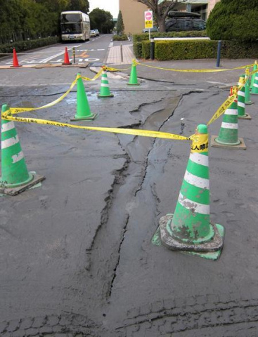 そのあたり一帯は埋め立て地で作られているから地盤が緩く、写真みたいに地面が変化してしまってようです。