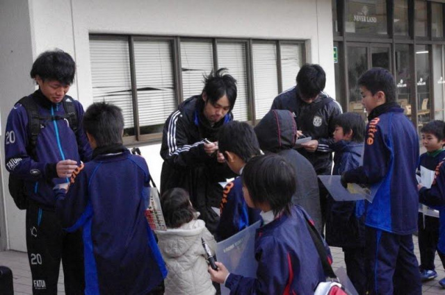 試合後にアスレの選手達にお願いをして、子供達にサインや写真のサービスをしてもらった。