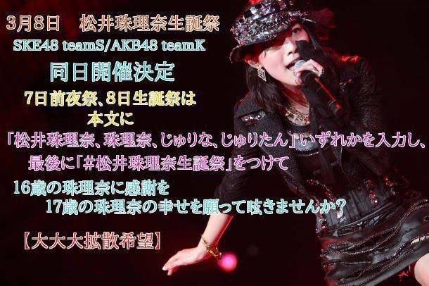 今日はSKE の絶対エース松井珠理奈の誕生日!