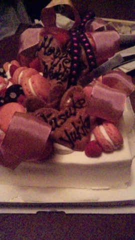 『あれ[s32]だれか誕生日か何かやったかいな[s108] それやったら言ってくれたら良かったのに[s349][s349]』と少し状況が掴めず、何人かで箱を開けたら、自分の結婚祝いのケーキでした[s410]