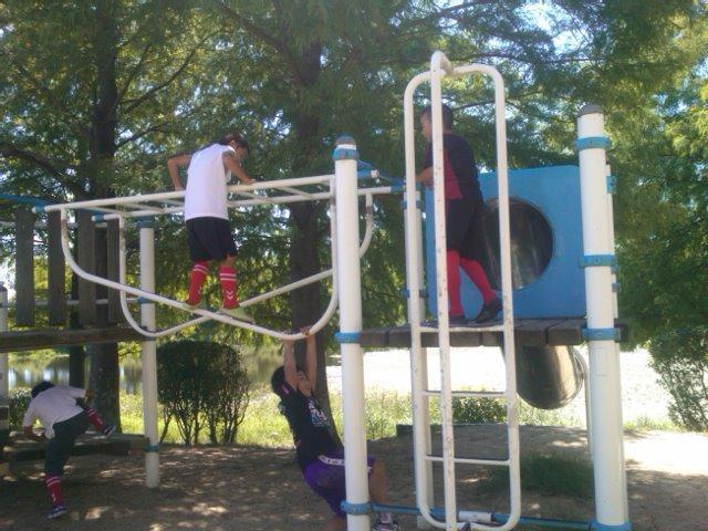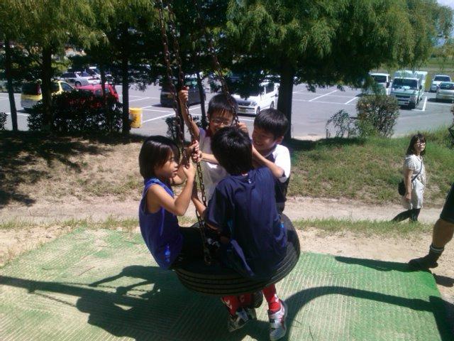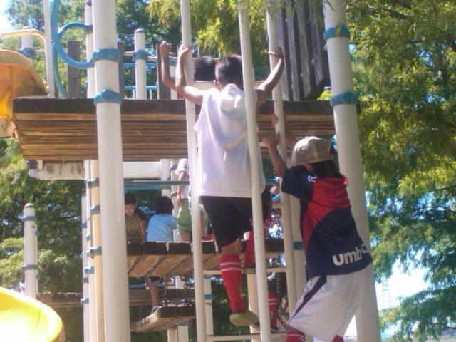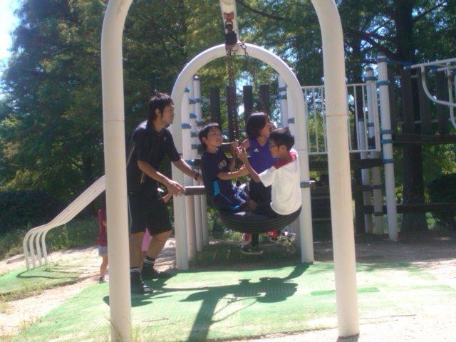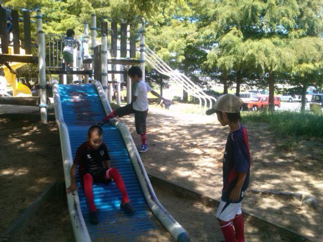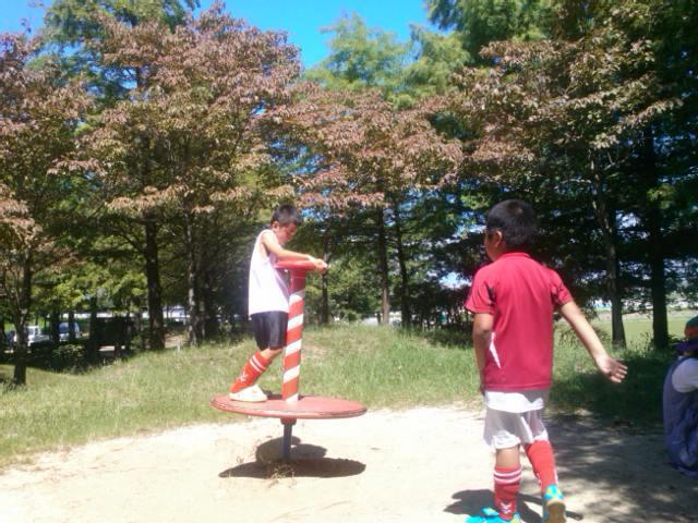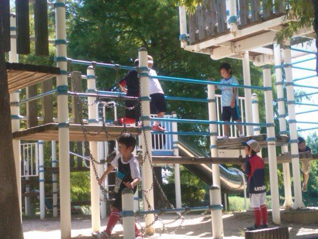 お昼ごはんの都合もあったのですが、初試合の子が多かったので、緊張がほぐれればいいかな、と、思い公園で遊んでみました。