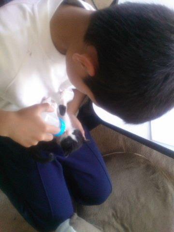 ここのところ、毎朝5時半に起きてちゃこにミルクをあげている琴月。