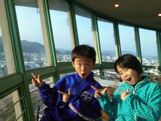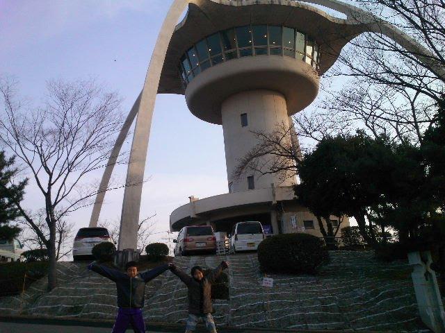 手柄山の上にある、回転する展望喫茶へ