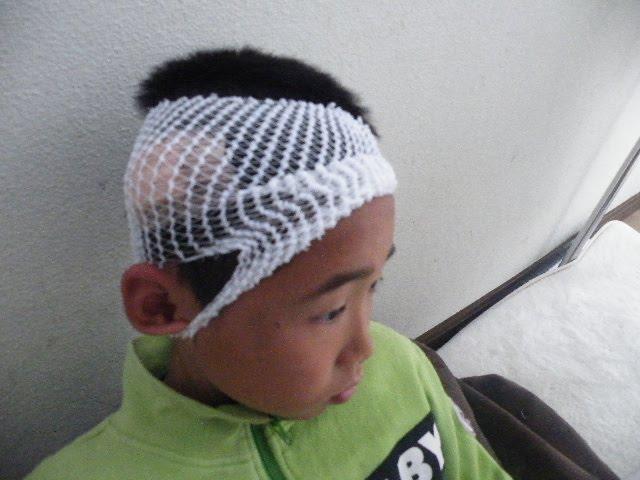 どうやら、転んで頭を打ったみたいで、頭の右耳の上辺りを切ってました。