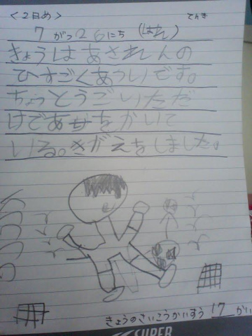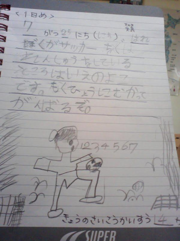 昨日から書き始めたサッカー日記だそうです。これは昨日。