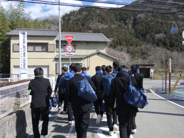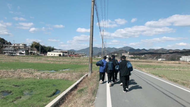 いつもは自転車通学なんですが、最後は同じ方面の子たちと歩いて。