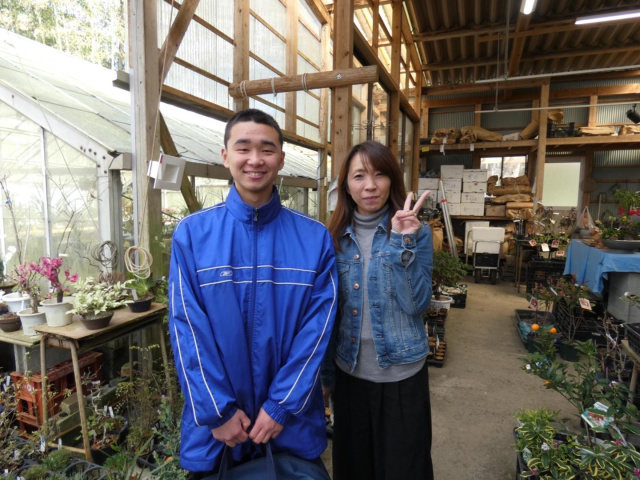 学校前にある園芸屋さんで、長男の同級生お母さんの愛子さん。