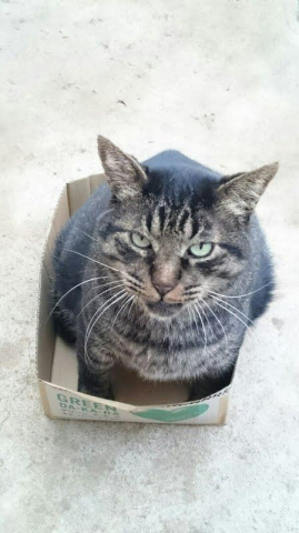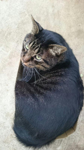 ネコはだいたい箱とか大好きみたいですが、ちょっと小さいかなぁと思ったのですが、与えてみたらやっぱり入りました(ー_ー;)