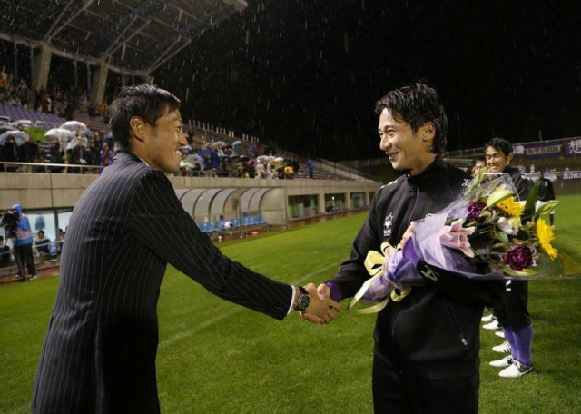 徳島時代いっしょにプレイした石田の引退セレモニーにナイショゲストとして花束を!