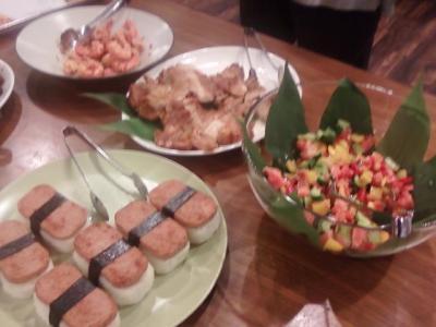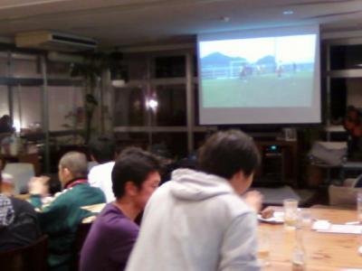 昼間の試合風景&チーム紹介&爆笑パフォーマンス!?ほかを流しながら、ハワイアンビュッフェスタイルでパーティーです!
