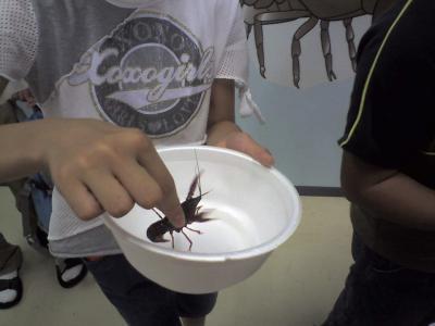 釣ったザリガニは持ち帰ることは出来ませんが、その場で体長の計測やオスメスの見分け方など教えてもらっていました。