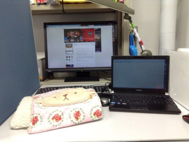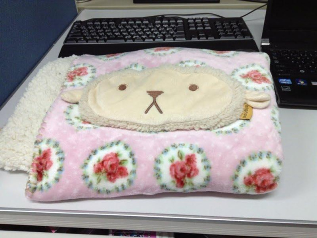 同期にもらった暖かい膝掛けと、アイピローをお供に頑張っています。