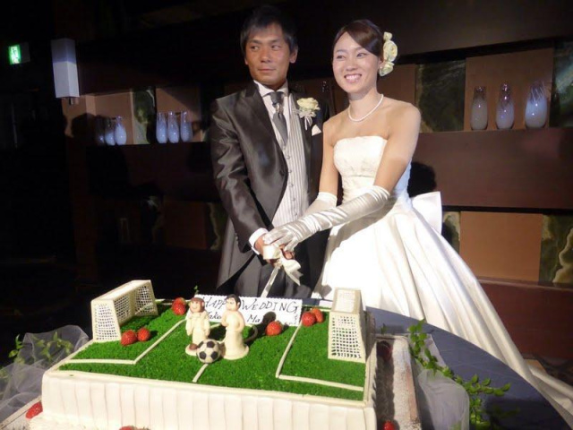 ケーキ入刀!サッカーコートかわいいね♪