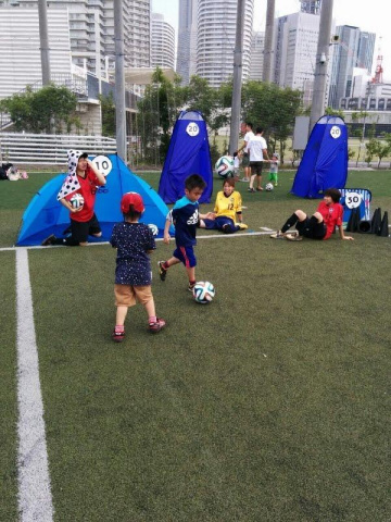 こんな感じで平和に遊んでいたら、気付いたら子供が増えているというあるあるでみんなで楽しくサッカー☆