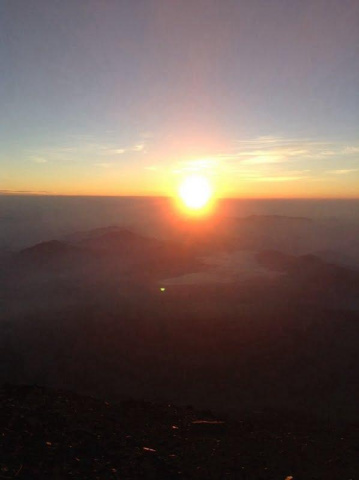 無事に御来光拝めました。しかし、強風のため山頂は砂ぼこりがすごく
