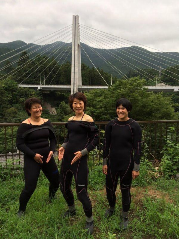 台風が近づいておりあいにくの雨でしたが決行。ウエットスーツを着るのに大汗かいて、手伝ってもらいながらやっとのことで準備完了!