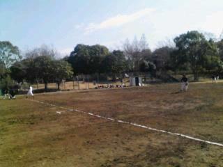 グランド状態は霜?露?かなにかでべっちょべちょの田んぼ状態で、試合開始までは時間があったので、アップの時間を減らしてまで、みんなでグランド復旧に精を出しました…。