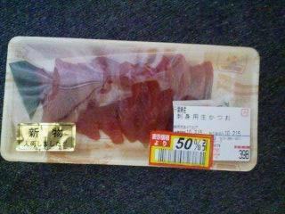 いつも帰りに寄るイトーヨーカドーがまだ営業してたので、半額の刺身買っちゃいました…。